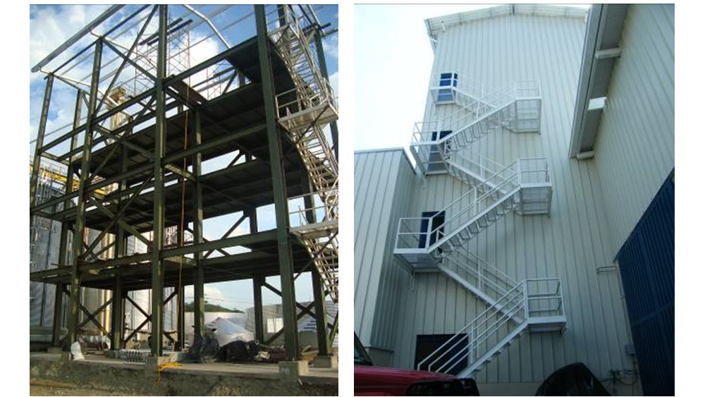 Construcción planta de proceso de maíz, bascula, edificio de proceso.